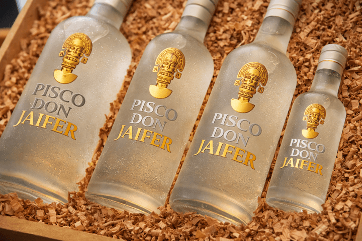 Inspirado en la iconografía de las culturas precolombinas —como el Tumi que adorna con orgullo sus etiquetas—, Don Jaifer nace como un tributo a la riqueza del Perú antiguo. La marca rescata el concepto de la destilación artesanal, respetando los tiempos de reposo y la selección manual de las mejores uvas pisqueras.